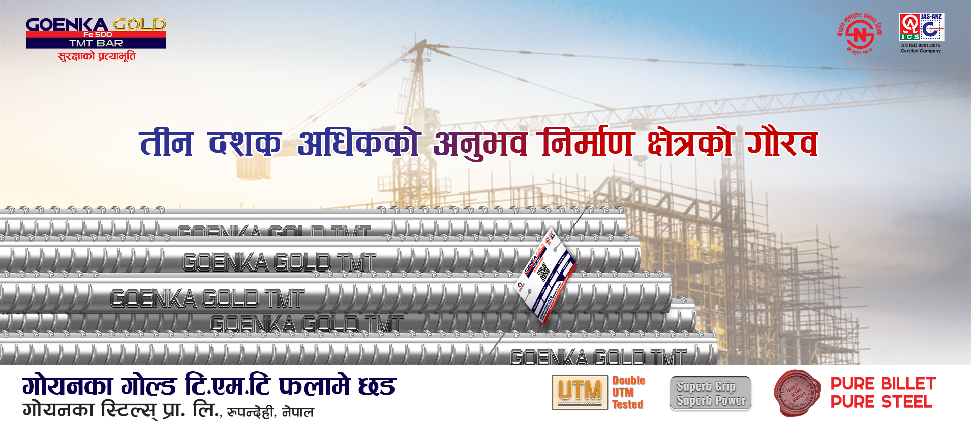 Goenka Steels, Nepal’s modern plant, produces Fe 500 TMT bars, wires & nails with 70,000+ MT capacity using QST technology.