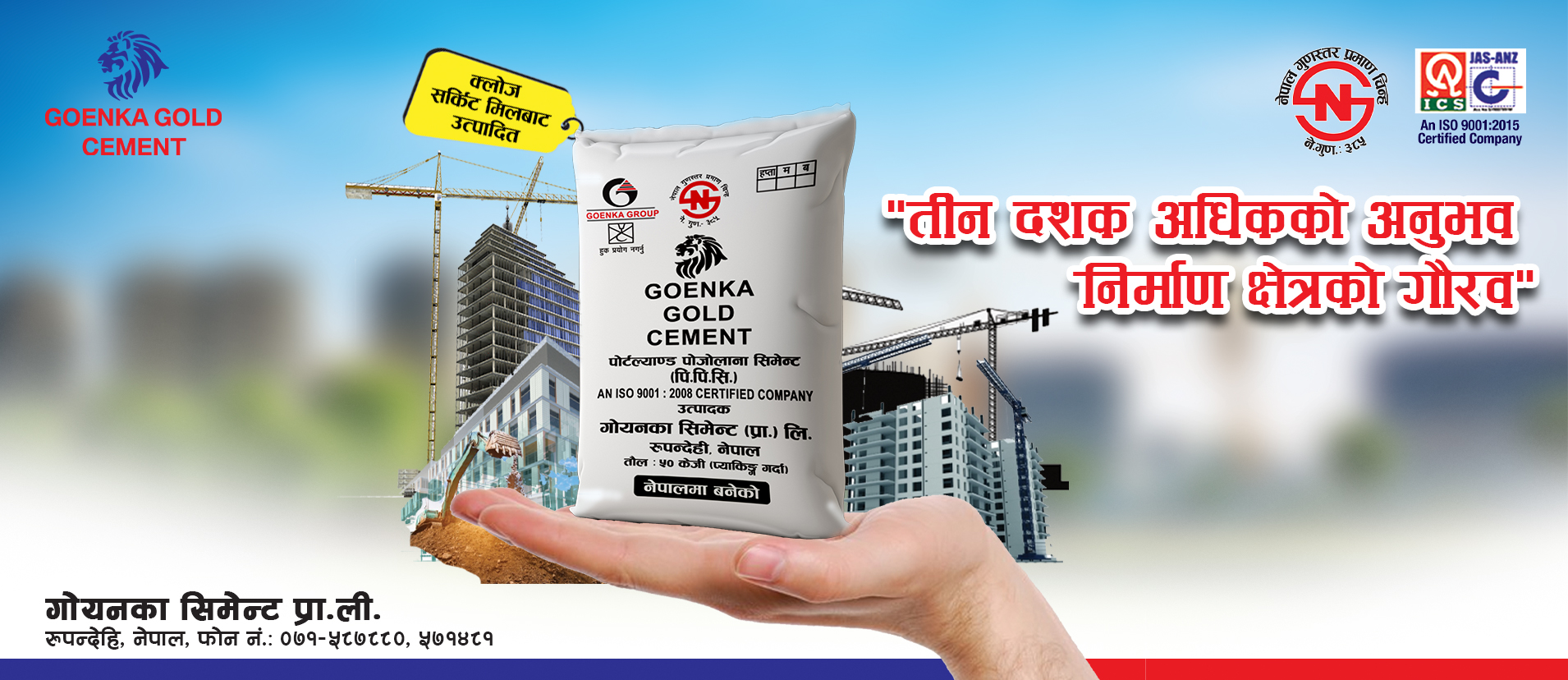 Goenka Cement, since 2066 B.S., produces high-quality OPC, PPC & PSC cement with 43-grade strength.